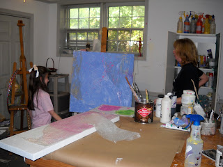 These pictures are me working with Catie Claire on a piece of art to be donated. It was great fun for an afternoon, but not being a teacher, I learned a few things to keep in mind in the future.