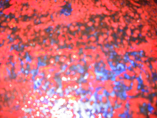 So, I began experimenting.   Below is  a small canvas (5×7) with a very wet red wash over several layers of paint.