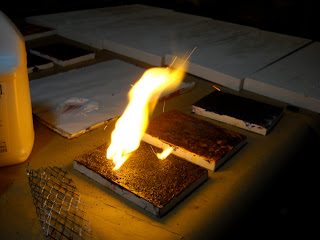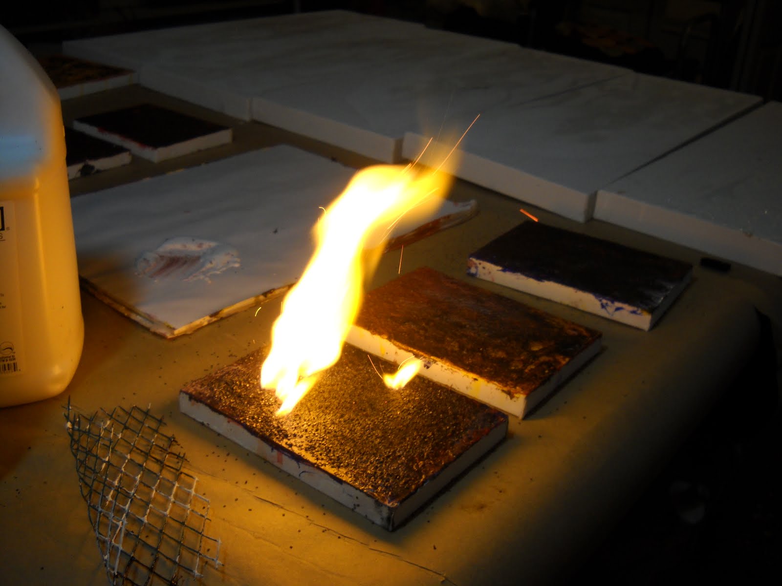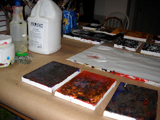 The three closest to the camera were all burned with gunpowder.   I have put medium on top of them – so they should dry quickly.   There are 7 more behind them – most of them are in their 5th or 6th layer -they are moving along.