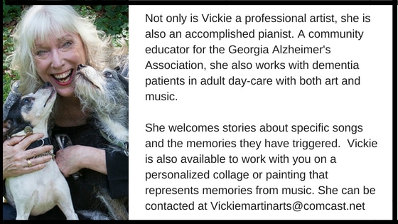 SO, I am making a public statement that I am creating art that holds music and memory at it’s core – beginning with music that has been known to trigger memories in dementia patients. Some of these songs include “Somewhere Over the Rainbow”, “Let Me Call You Sweetheart”, “You Are My Sunshine”. As I create I will share the stories that inspired me.